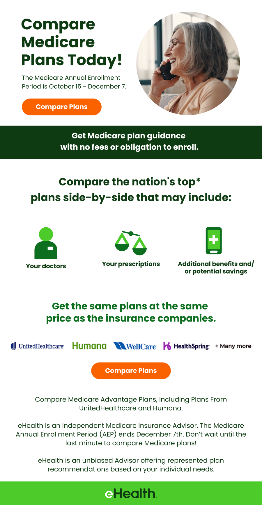 eHealth is an Independent Medicare Insurance Advisor. eHealth is an unbiased Advisor offering represented plan recommendations